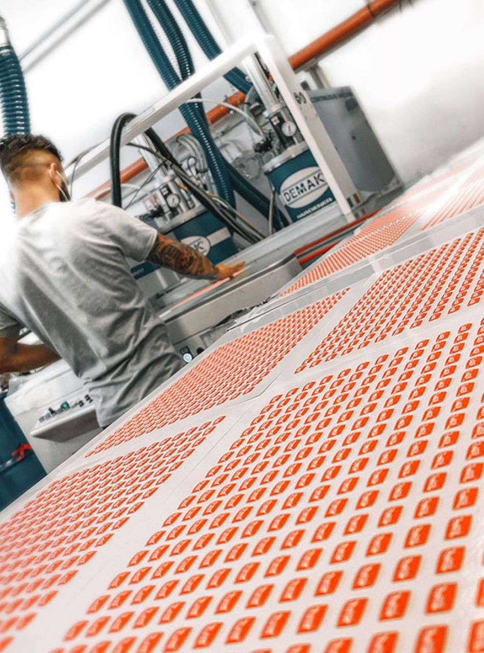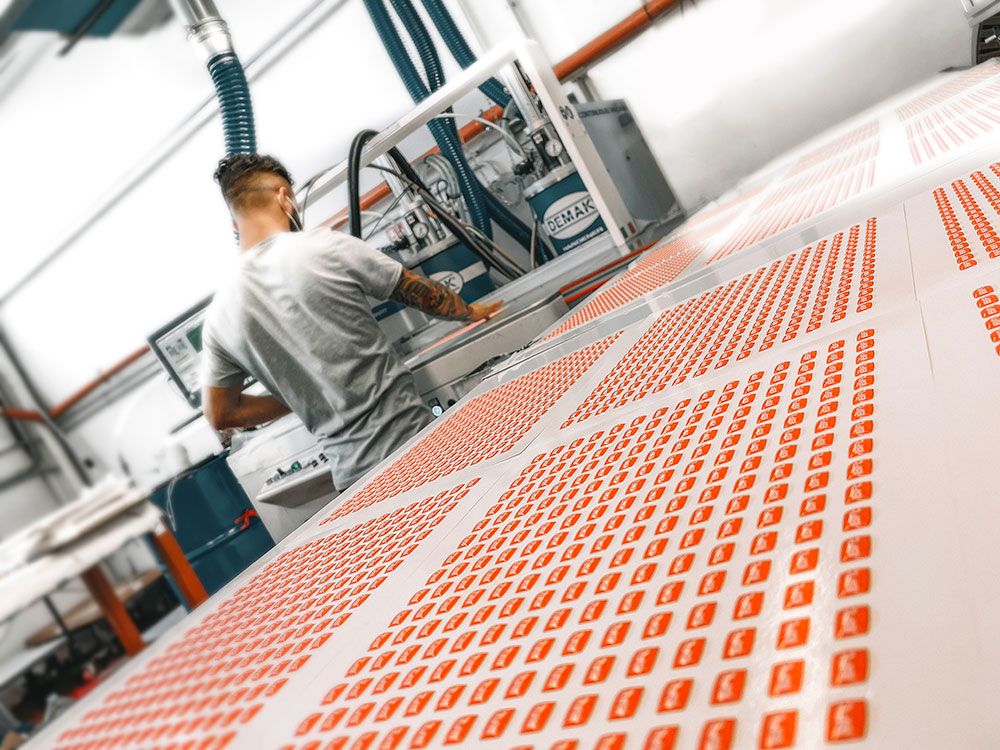 New Label opera in una struttura di 1500mq interamente climatizzati con all’interno diversi reparti produttivi, realizzando l’intero ciclo produttivo internamente.