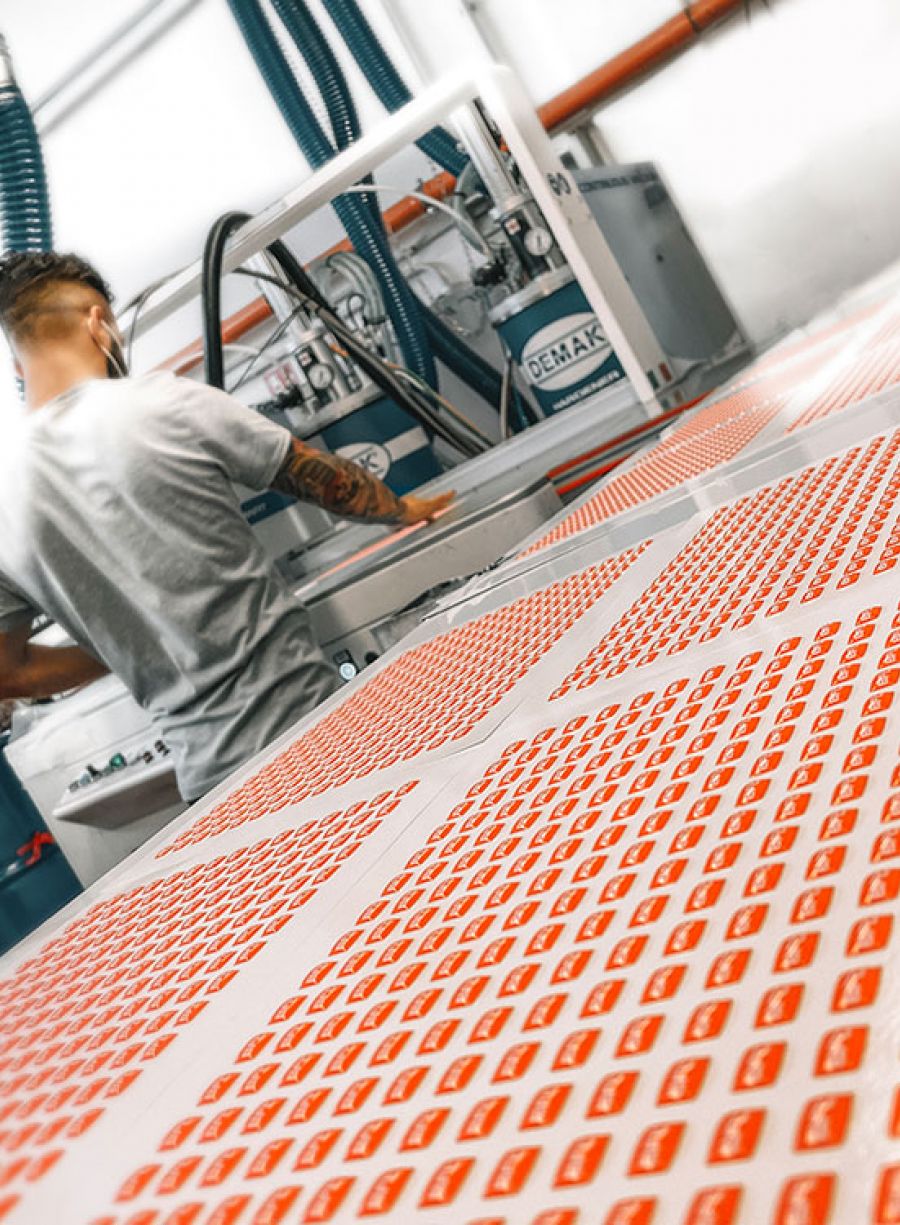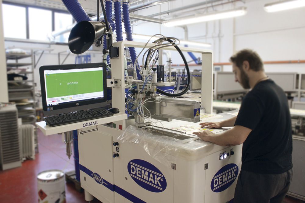 Vengono stesi su svariate tipologie di etichette una media di 12 tonnellate all’anno di resina poliuretanica nei suddetti impianti viene utilizzata una resina di media durezza a 32 shore d.
