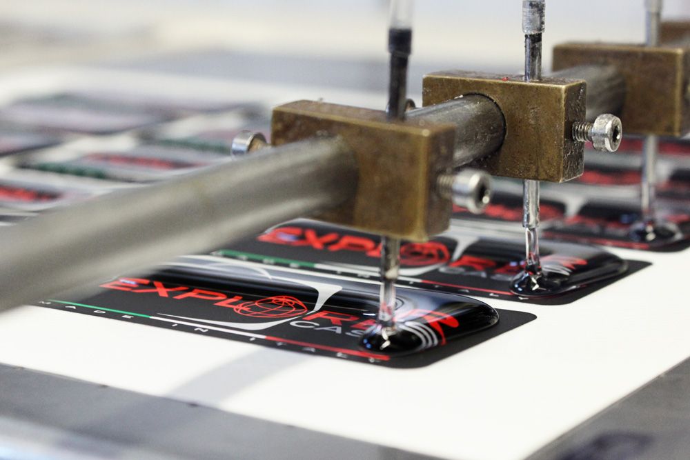 Resinatura etichette | Resina brillante | Resina 80 shore | Etichette prespaziate resinate