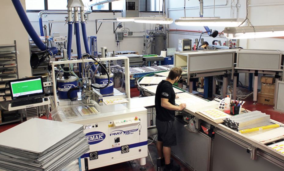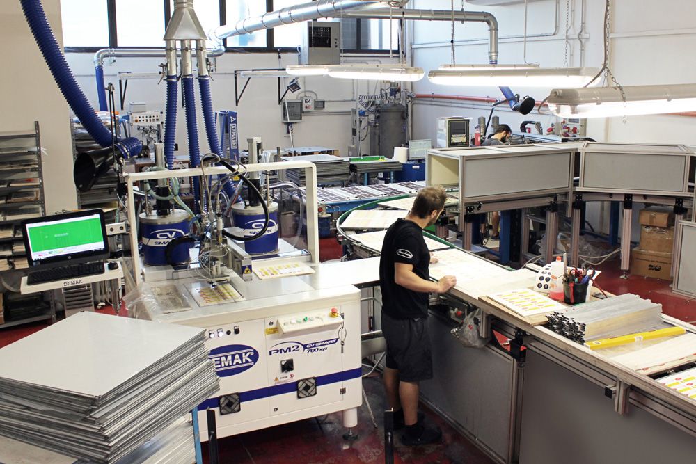 reparto climatizzato a temperatura ed umidità controllata nel quale sono presenti 3 impianti in linea di cui 2 utilizzati prevalentemente per produzioni industriali e un terzo impianto ad uso prevalentemente per prototipazioni e piccole serie.